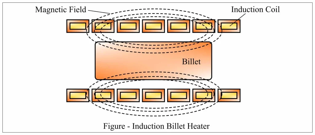current flowing through the induction coils of the billet heater generates a rapidly changing magnetic field.